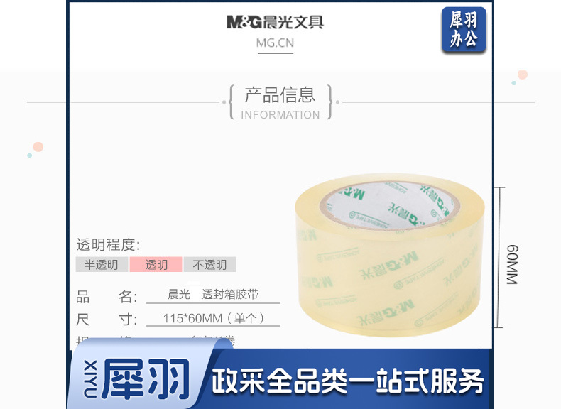 晨光(M&G)超透封箱胶带60mm*100Y 透明胶带 办公用品AJD97389