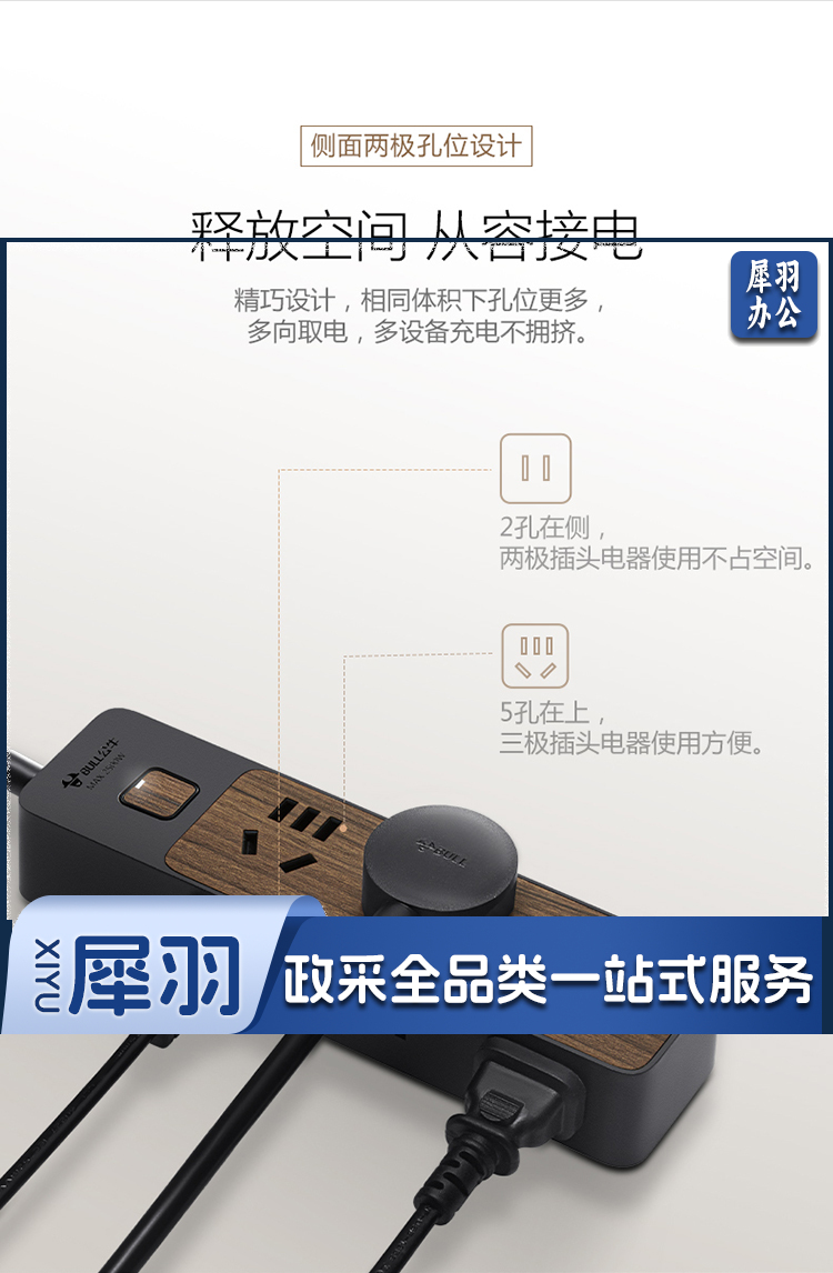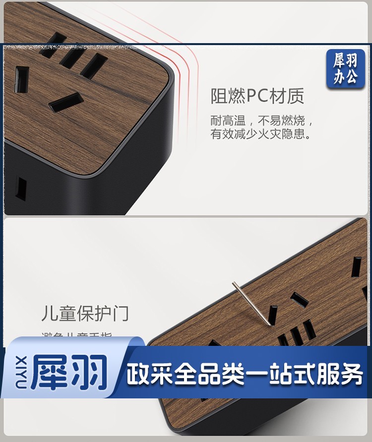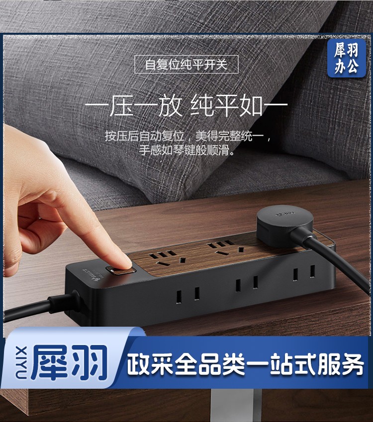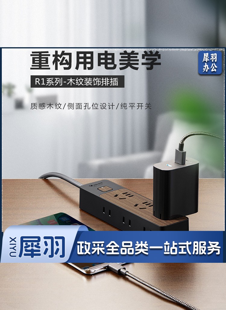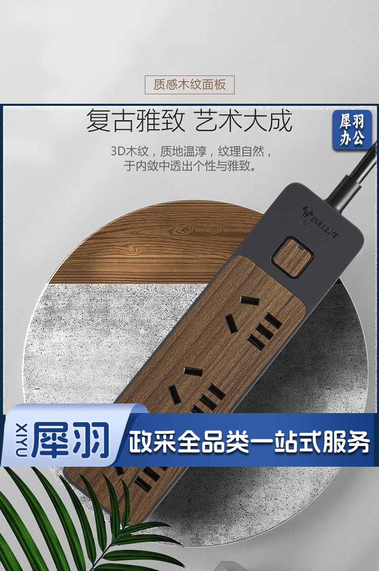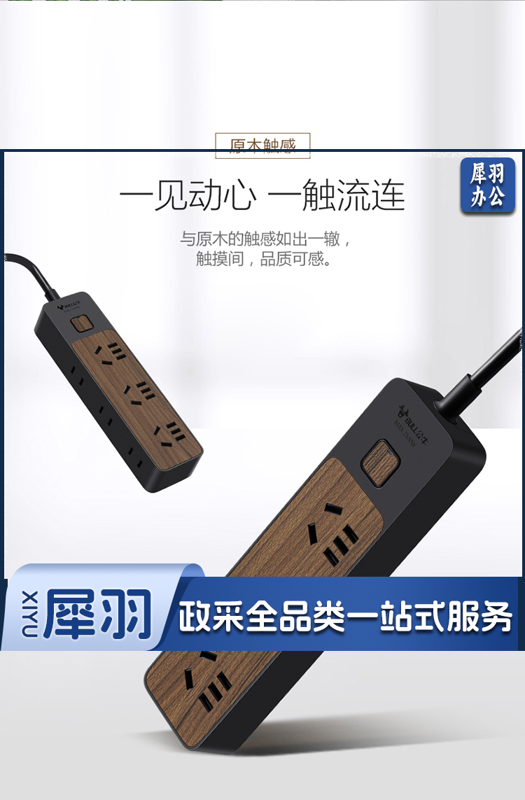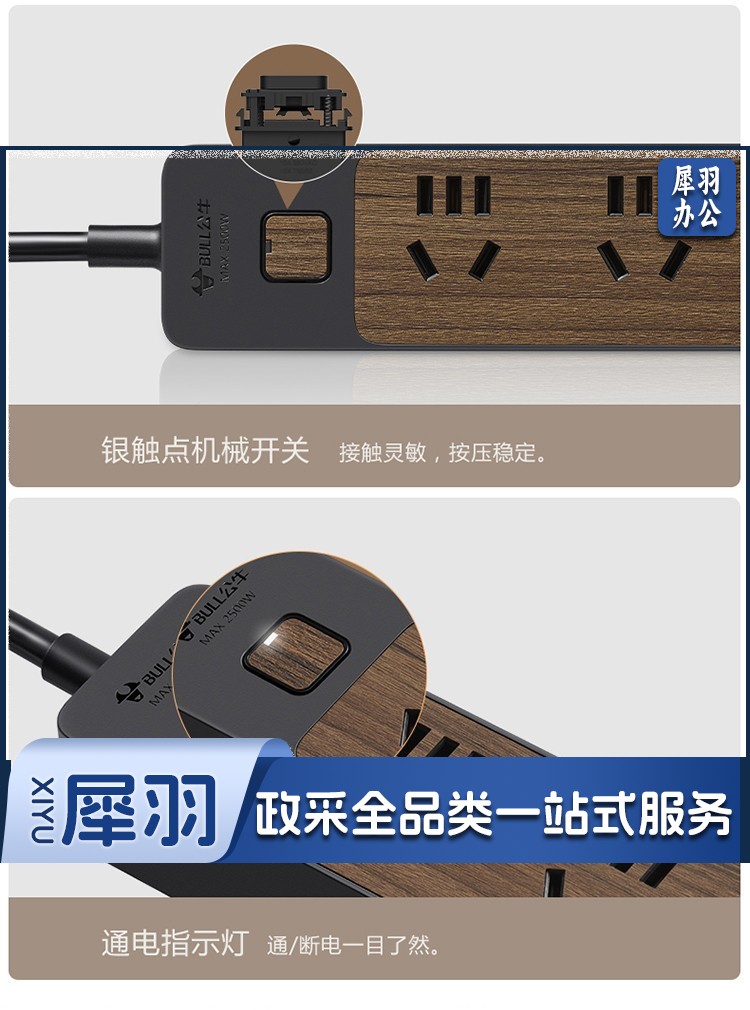 公牛(BULL)新国标插座/插线板/插排/排插/接线板/拖线板 6位总控1.8米 黑色木纹 GN-R1330