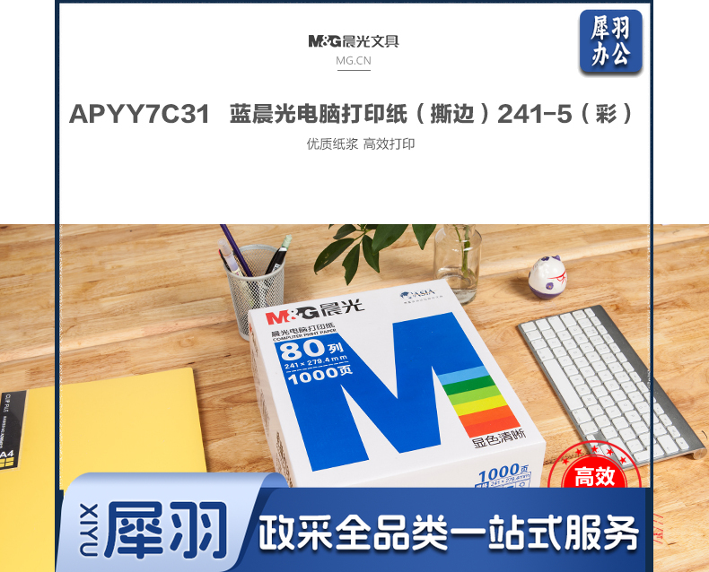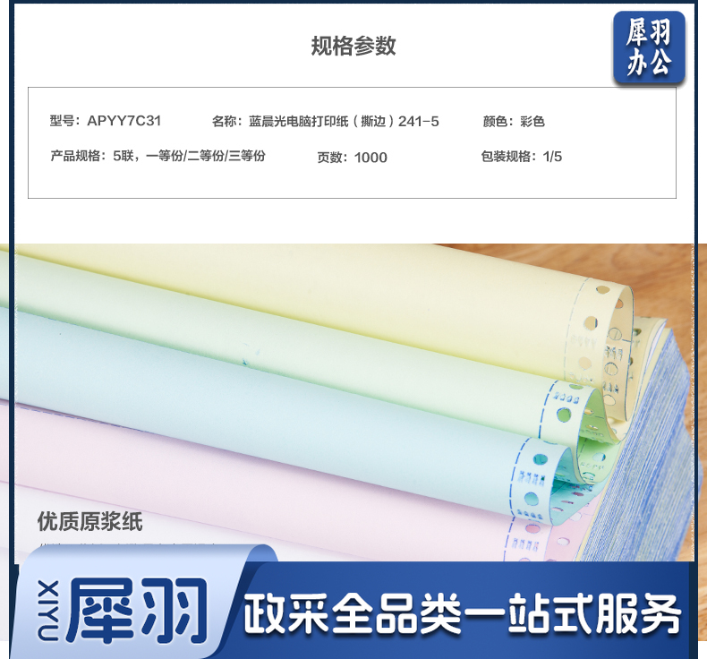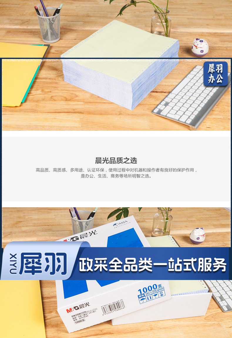 晨光(M&G)APYY7C31A 电脑打印纸 80列彩色可撕边 241-5 五联一等分 1000张/箱