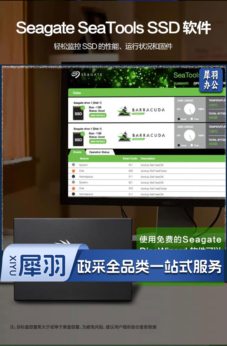 希捷(seagate) 512GB SSD固态硬盘SATA3.0接口 台式机笔记本电脑硬盘 读速高达540MB/s 希捷酷鱼
