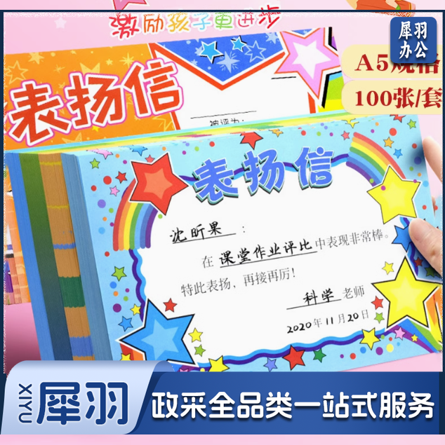 幼儿园荣誉奖状儿童喜报A5铜版纸 奖状 100张/套