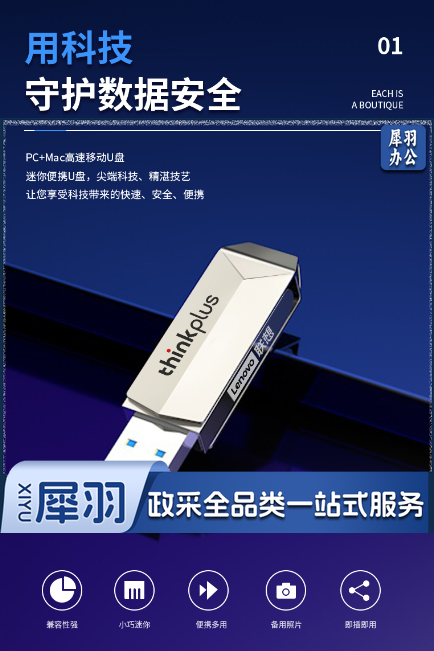 联想(thinkplus)32GB USB3.0高速U盘 金属旋转 车载电脑办公通用优盘TPU301银色