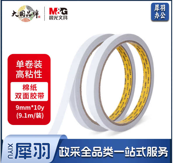 晨光(M&G)文具高粘性棉纸双面胶带9mm*10y(9.1m/装) 办公用品 32卷装AJD97394