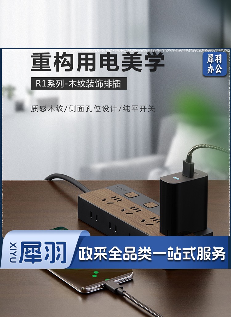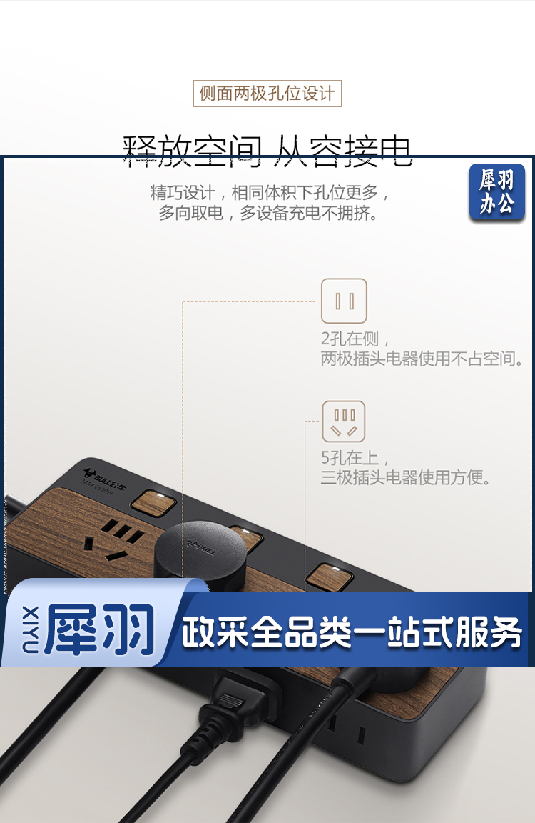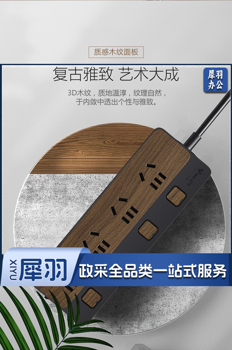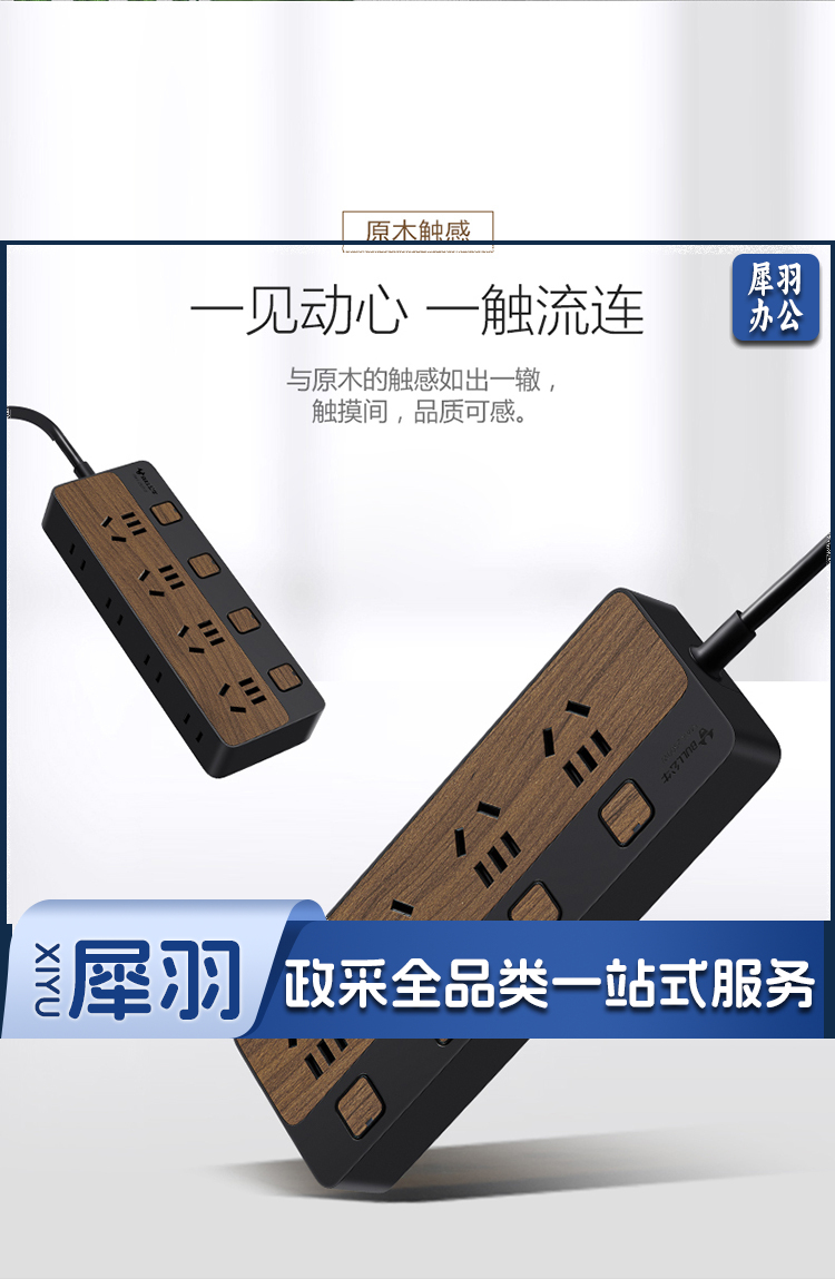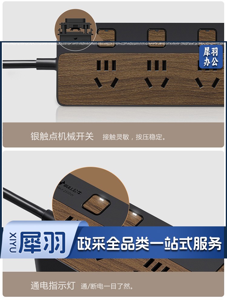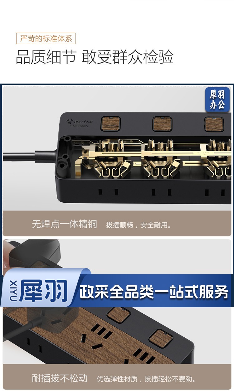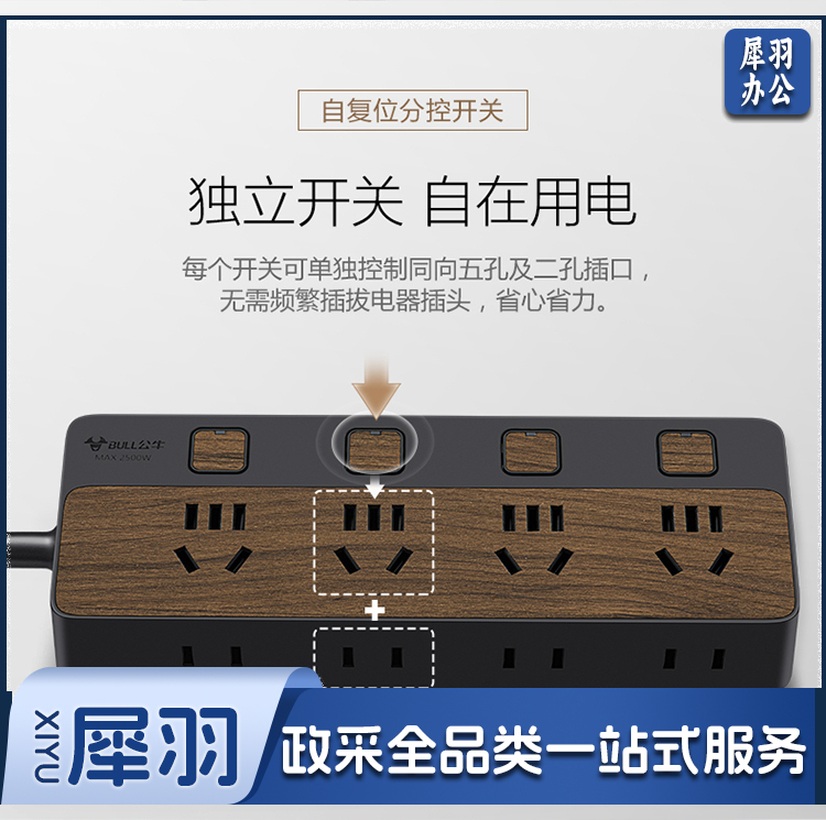 公牛(BULL)新国标插座/插线板/插排/排插/接线板/拖线板 8位分控1.8米 黑色木纹 GN-R1443