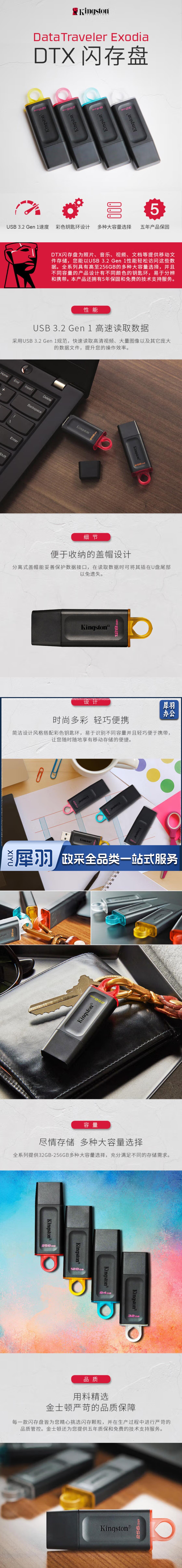 金士顿 64GB USB3.2 Gen 1 U盘 优盘DTX