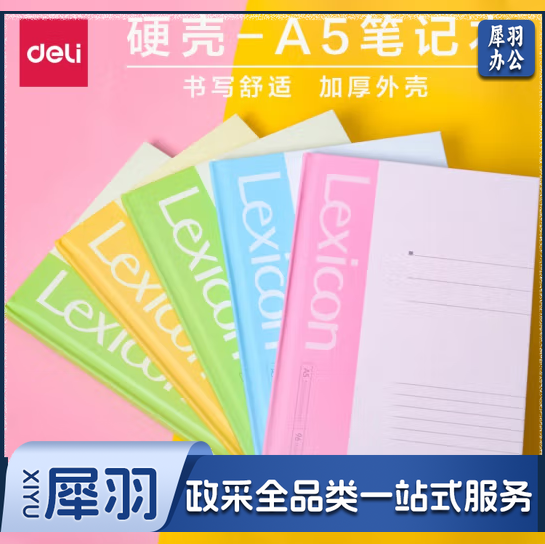 得力 3284 记事硬面抄笔记本A5 办公硬抄本96张记事本 颜色随机