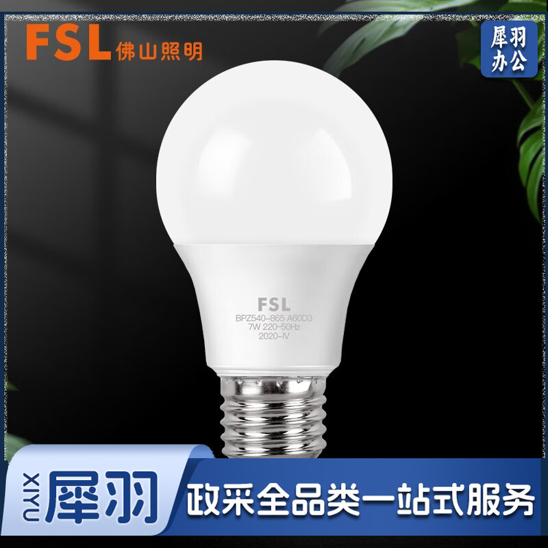 FSL 佛山照明led灯泡e27大螺口大功率球泡节能灯超亮商用照明螺旋高亮光源 LED球泡 7W E27 白光
