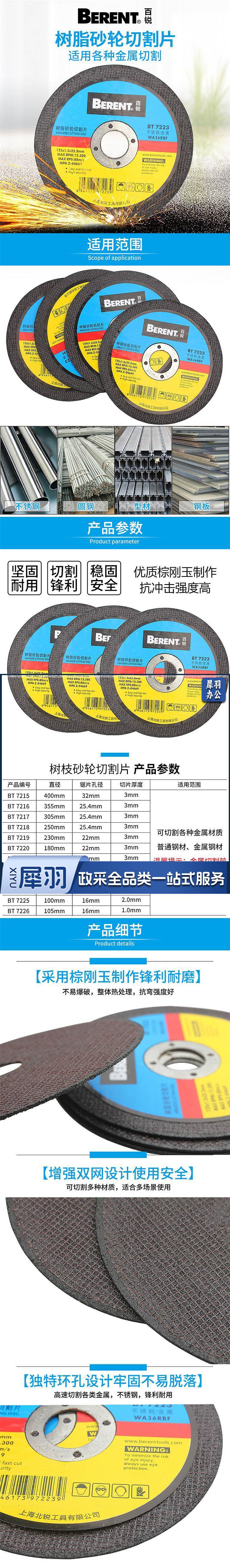 cc百锐工具BT7218\树脂砂轮切割片蓝黑250*3*25.4(片)