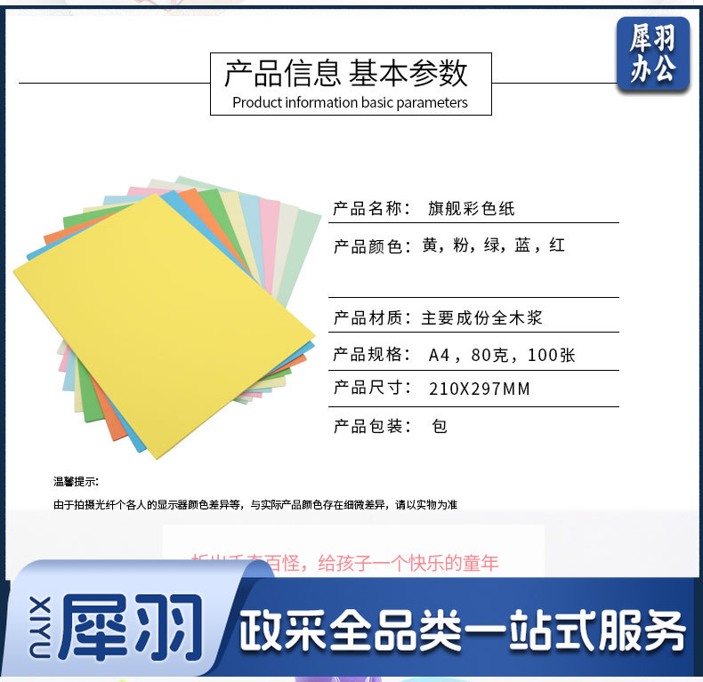 旗舰 A4彩色打印纸80G 100页/包 下单备注颜色