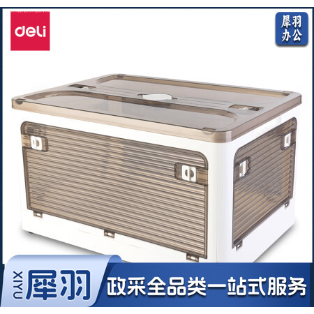 得力 (deli)白色PG101可折叠书籍桌面收纳箱透明书箱书本大号整理箱学生宿舍储物箱带滑轮