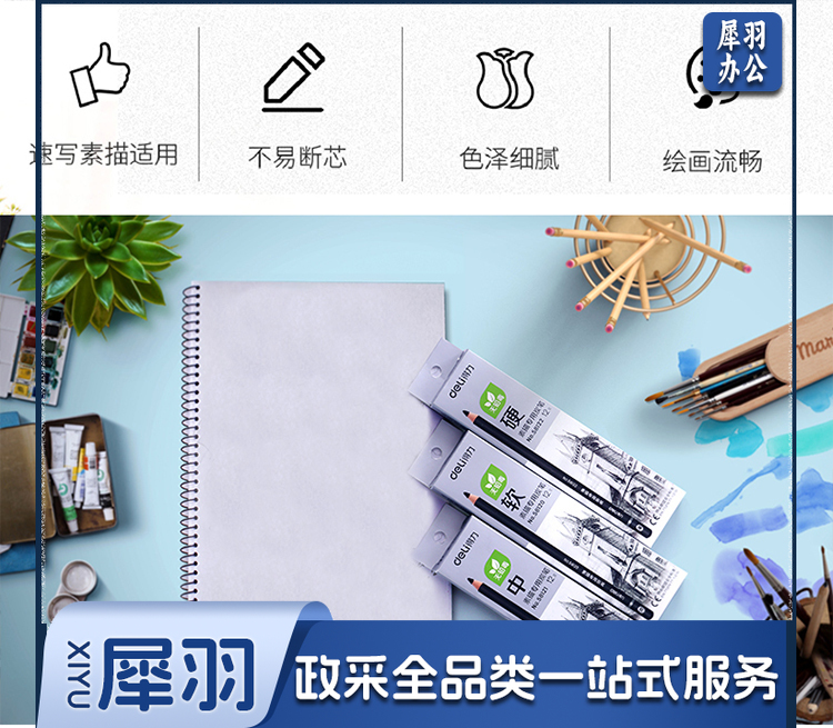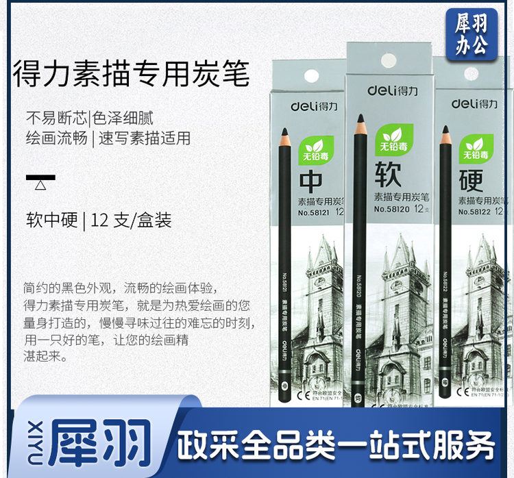 得力 (deli) 58122 美术素描炭笔 石墨铅笔 硬款12支盒装