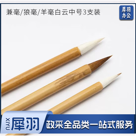 御宝阁 大中小白云笔兼毫狼毫羊毫毛笔书法专用初学者入门套装小学生毛笔字大白云国画小楷笔中楷精品中号楷书大毛笔 中号兼/狼/羊白云3支装 白云笔