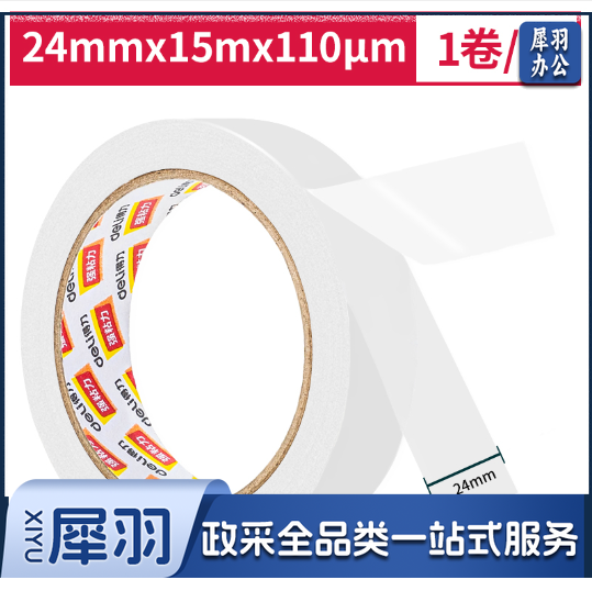 得力30067pet双面胶带24mm*15m*110μm(透明)(1卷/袋)