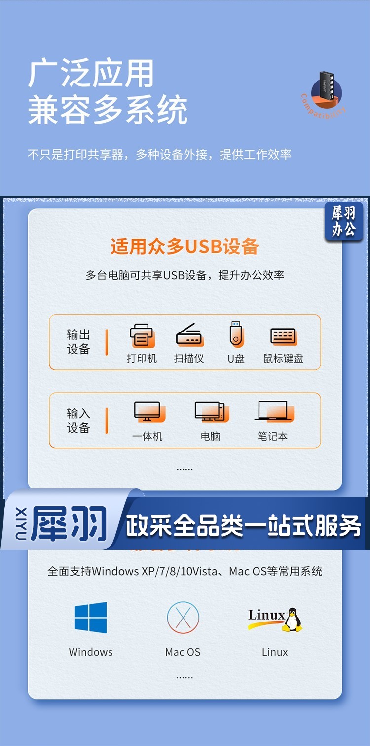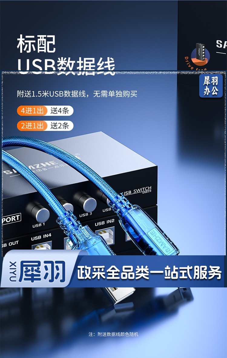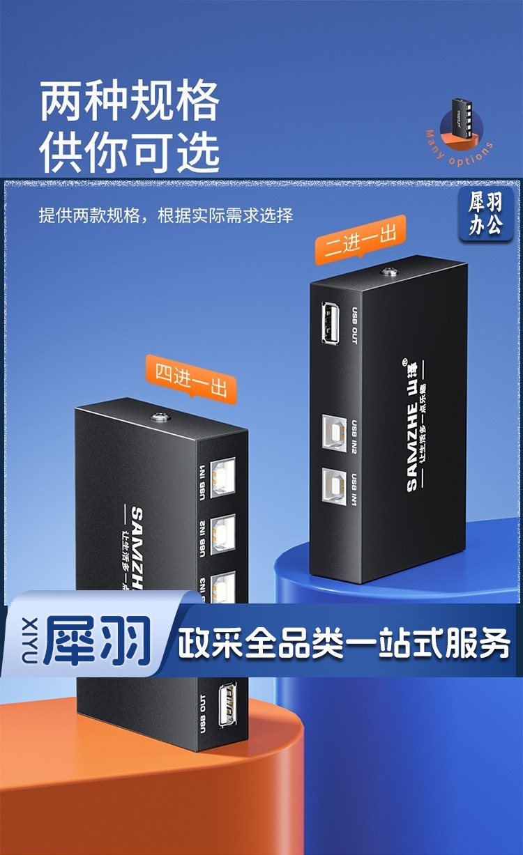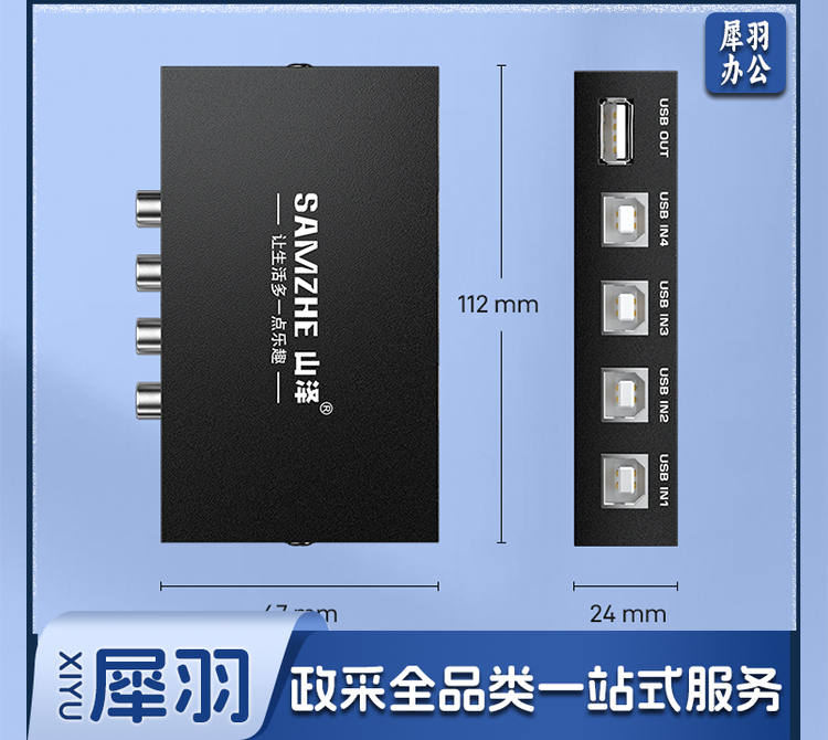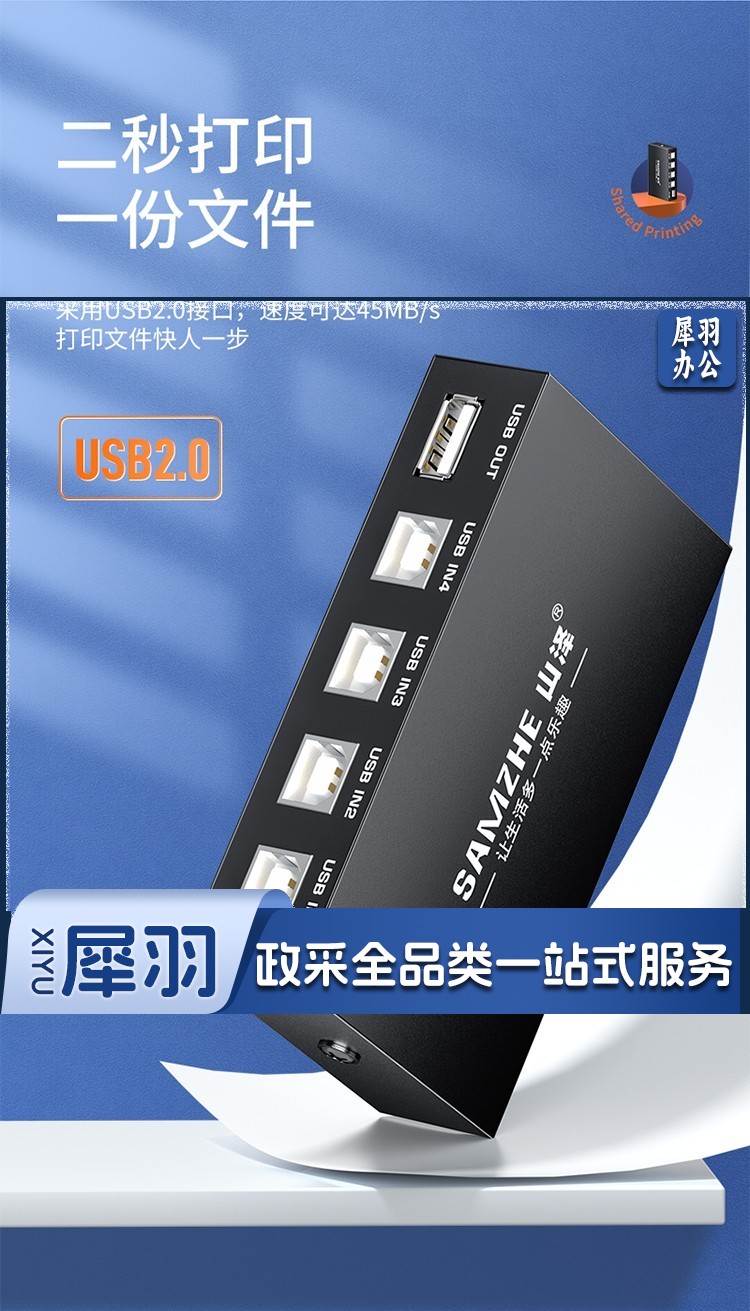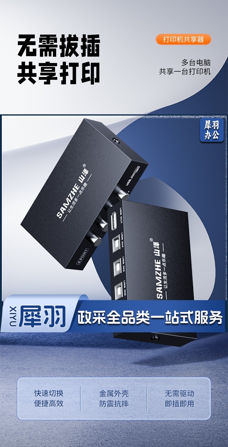 山泽 usb打印机共享器 四进一出切换器一拖四分线器 台式机笔记本电脑接鼠标键盘U盘共享4口转换器免驱BL-04