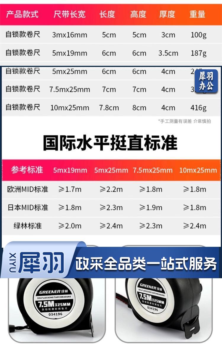 绿林 034195 II级精度 加厚加硬盒尺 5*25mm 单位:个