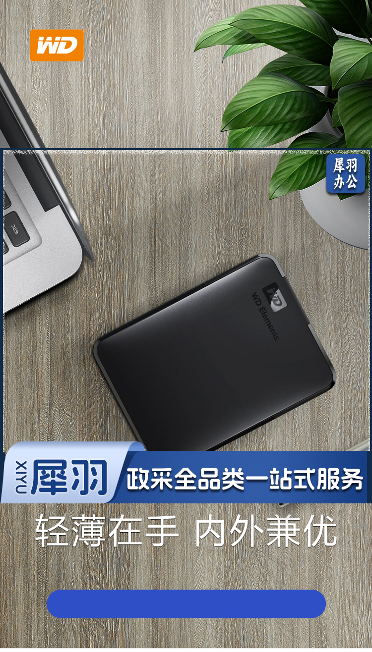 西部数据(WD) 2TB 移动硬盘 USB3.0 Elements 新元素系列2.5英寸 机械硬盘 便携 家用办公 存储备份
