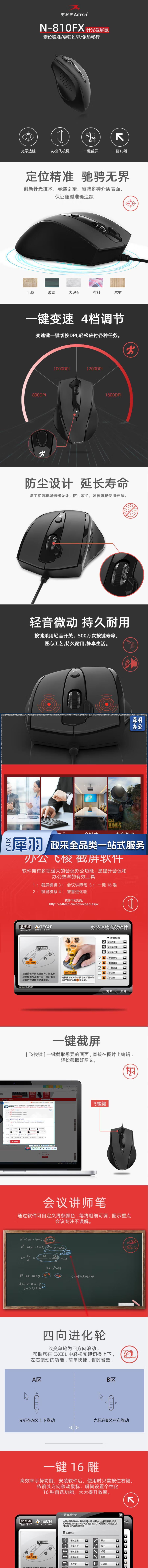双飞燕N-810FXS 有线鼠USB接口SB接口大手鼠标 绅士哑黑