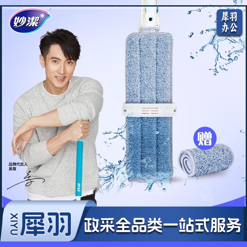 妙洁 巧净免手洗平板拖把 木地板瓷砖干湿两用 共2块原装拖布