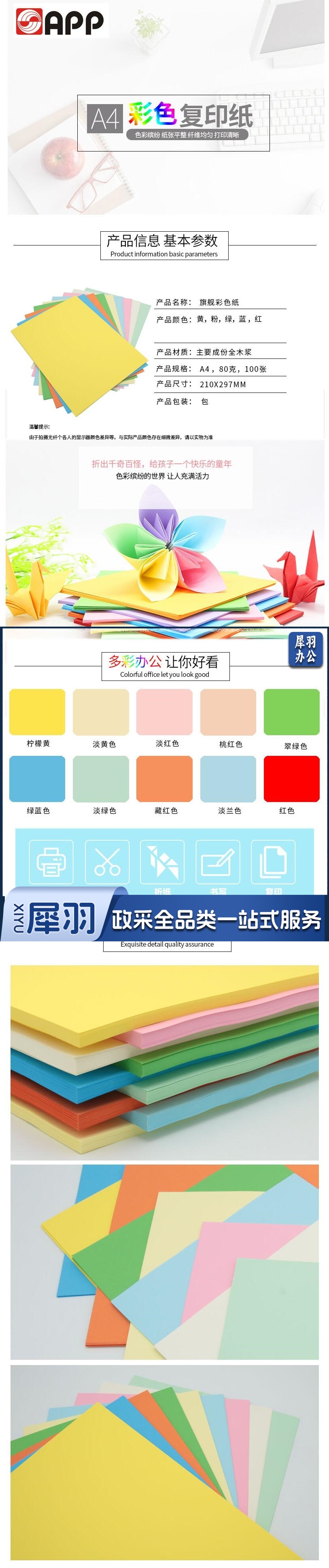 彩色卡纸 A4 80g手工折纸剪纸淡粉色彩纸 非硬卡纸 100张/包