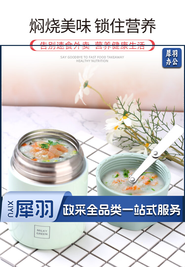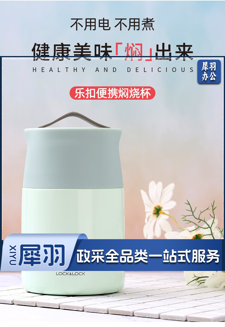 乐扣乐扣焖烧杯 大容量饭盒女便携家用真空304不锈钢焖粥8037保温壶 浅绿色 600ml