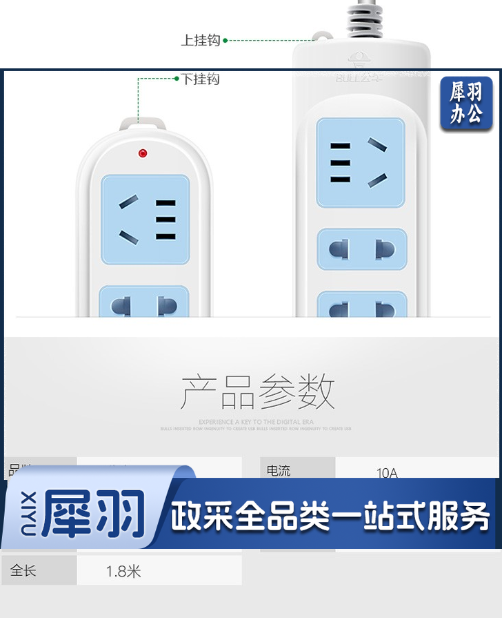 公牛 插排 新国标插排 4位无控插排 1.8米 插排