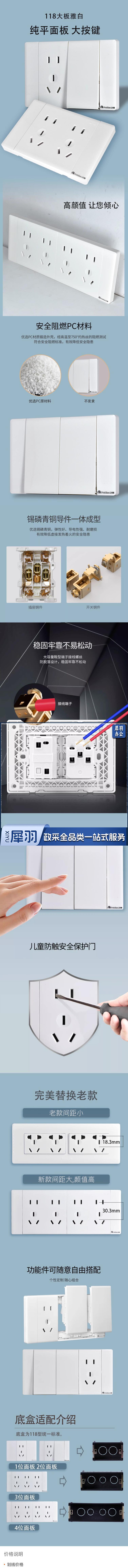 飞雕 十五孔电源插座 118型开关插座面板15孔插墙壁开关 三位五孔插座