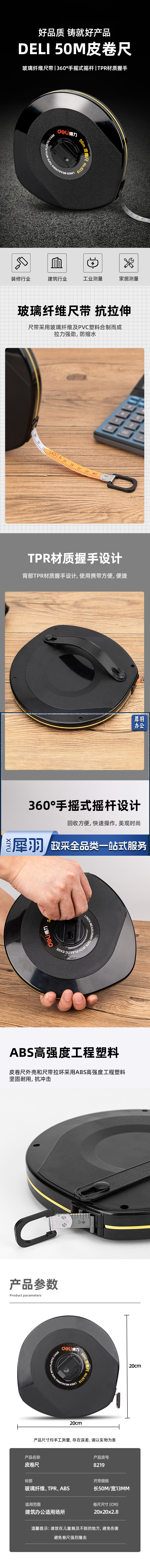 得力(deli)50m皮卷尺操场盘式50米皮卷尺软尺测量尺子 8219黑色