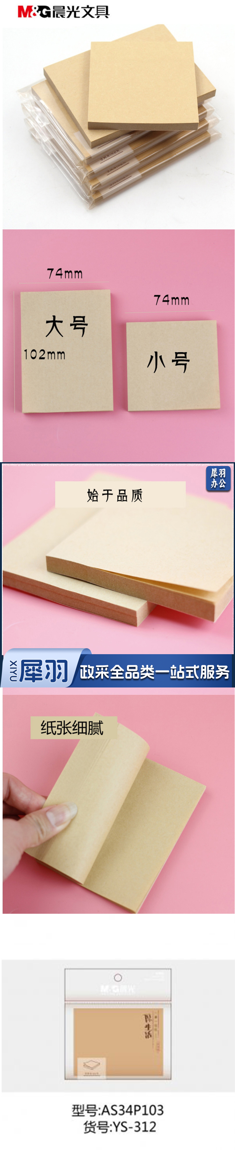 晨光/M&G YS-312 原生活便条纸 80页 3*4 80页/本(单位:本) 牛皮纸色