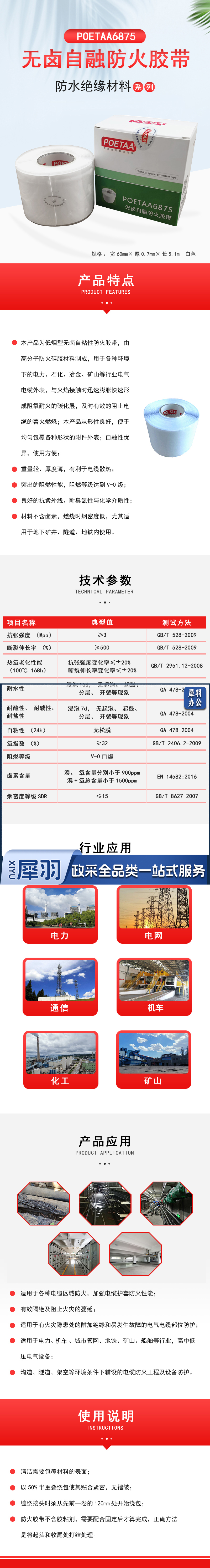 颇尔特POETAA 无卤自融防火胶带,POETAA6875 白色,60mm*0.7mm*5.1m(单位:卷)
