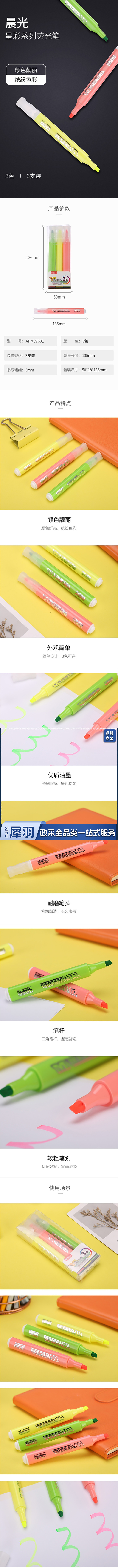晨光/M&G AHMV7601 星彩荧光笔 单头 3色 3支/盒(单位:盒)