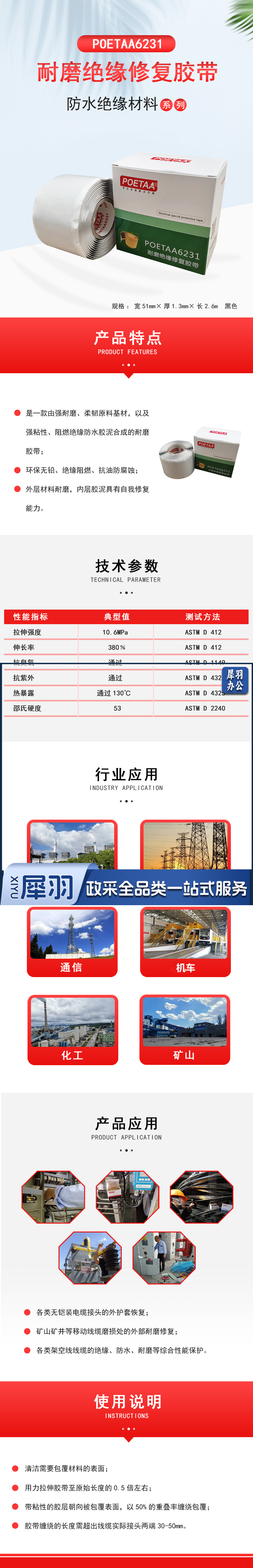 颇尔特POETAA 耐磨绝缘修复胶带,POETAA6231 黑色,51mm*1.3mm*2.6m(单位:卷)