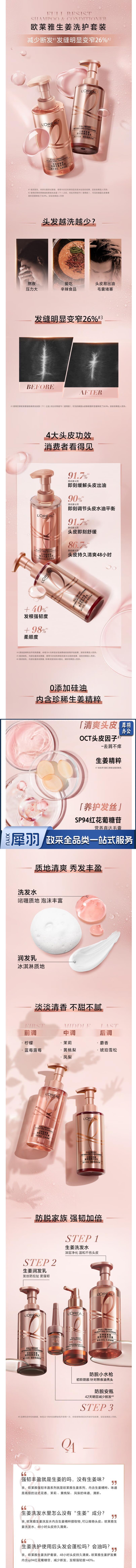 欧莱雅 生姜洗发水护发素 强韧发根固发去屑洗护套装 货号:JC