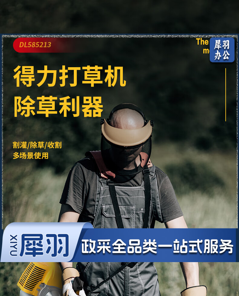 得力(deli)侧挂式割草机打草机除草机二冲程汽油机小型割灌机