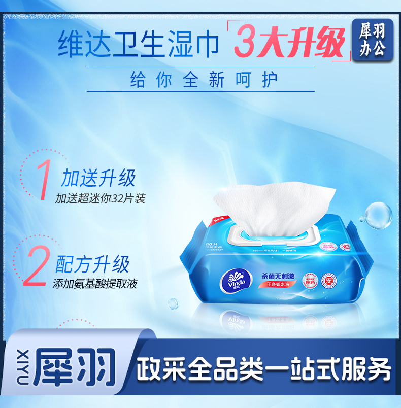 维达(Vinda)湿巾 湿纸巾RO纯水湿巾80片*4包纯水洁肤 母婴幼儿可用卫生湿巾纸
