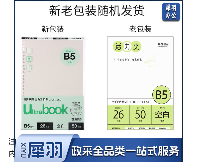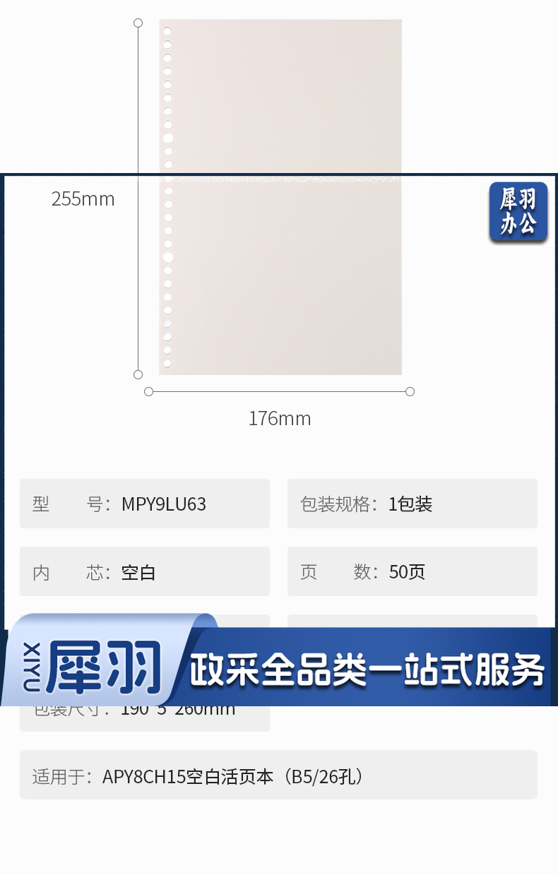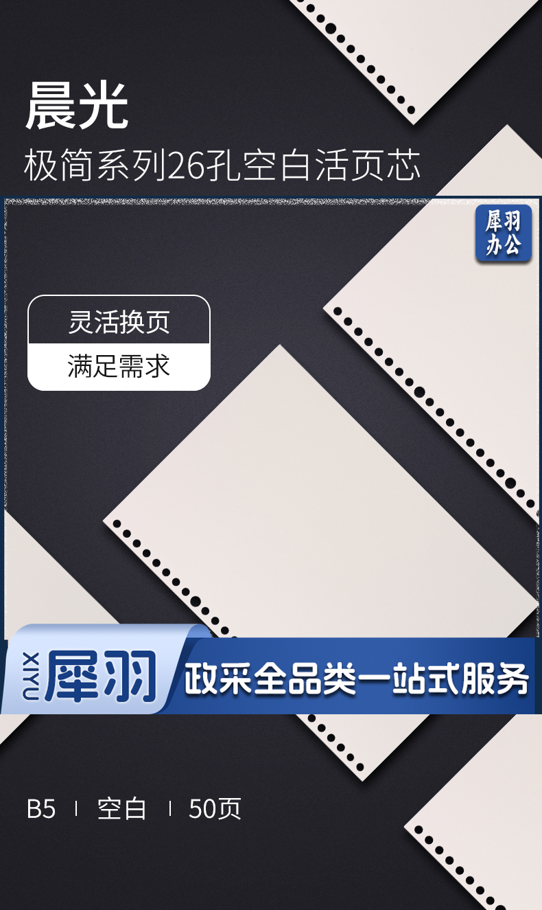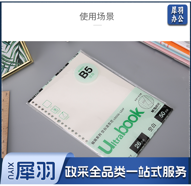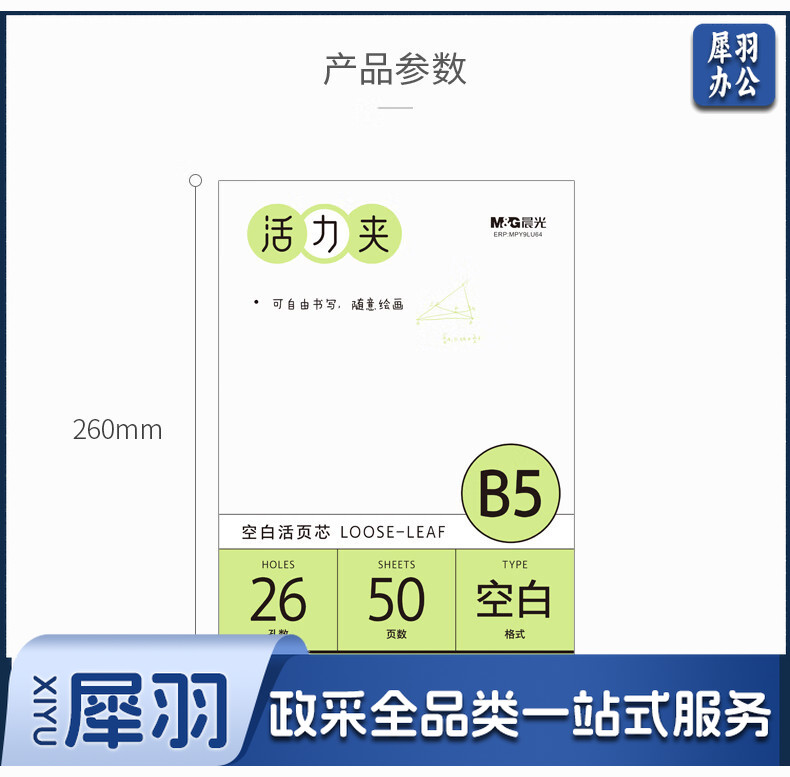 晨光(M&G)MPY9LU64 文具B5/26孔米色空白活页替芯 记事本笔记本子 活页纸替换内芯线圈纸 50张/包