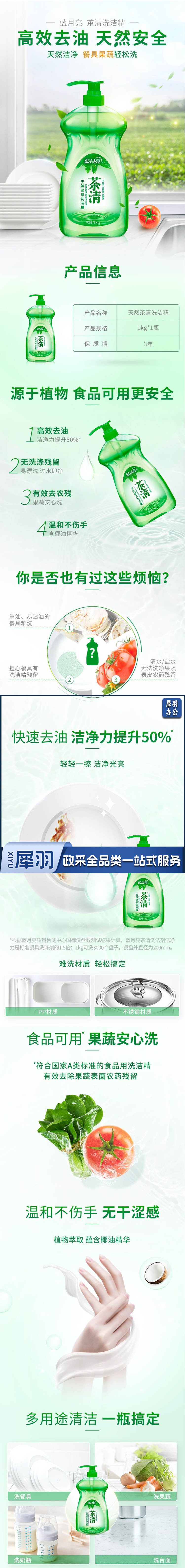 蓝月亮 1kg 茶清洗洁精 洗涤灵 果蔬餐具清洗剂 食品可用 高效去油 计价单位:瓶