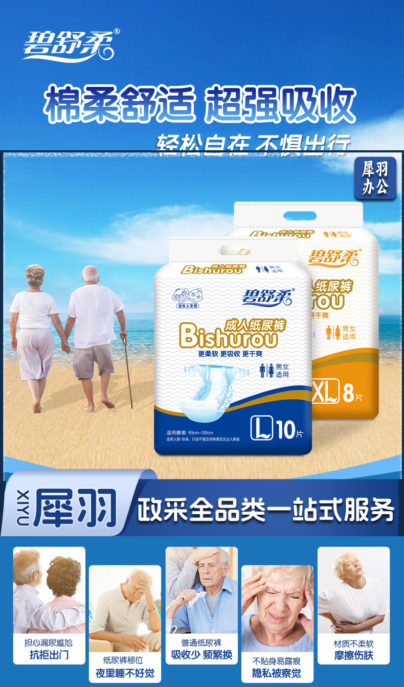 碧舒柔成人纸尿裤老年人尿不湿一次性男女产妇(XL码大号10片)