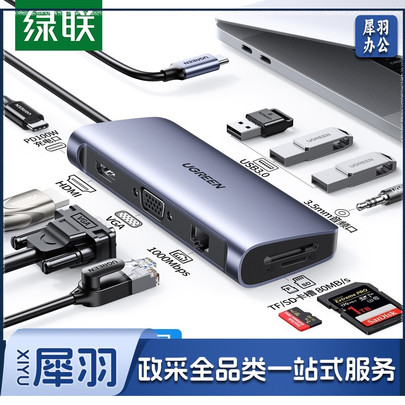 绿联 80133 Type-C扩展坞USB-C转HDMI雷电3/4拓展坞VGA转换器网线转接头分线器音频读卡器通用苹果Mac电脑华为笔记本