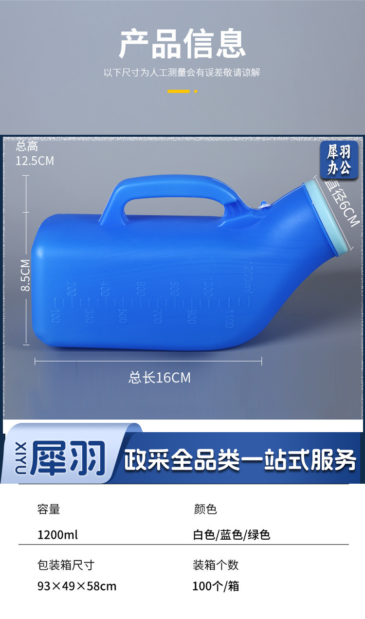 老人尿壶家用带盖小便器 男女尿壶 塑料小便壶接尿壶便盆夜壶1200