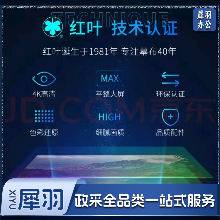 红叶新投影幕120英寸16:9电动遥控白玻纤幕投影仪幕布家用投屏布背景墙家庭影院投影屏投屏高清