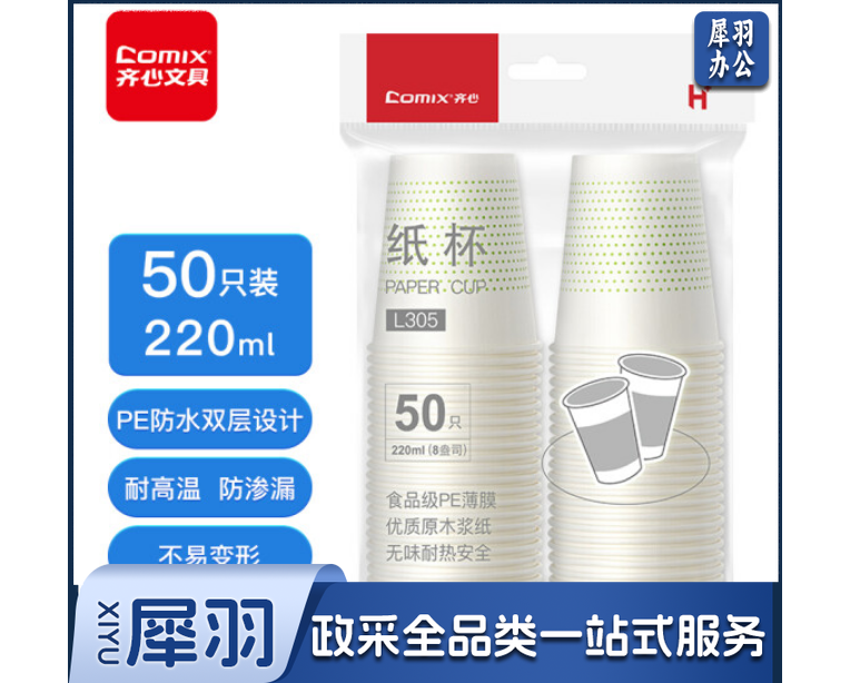 齐心(Comix)加厚一次性水杯 L305纸杯220ml 8安 50个装