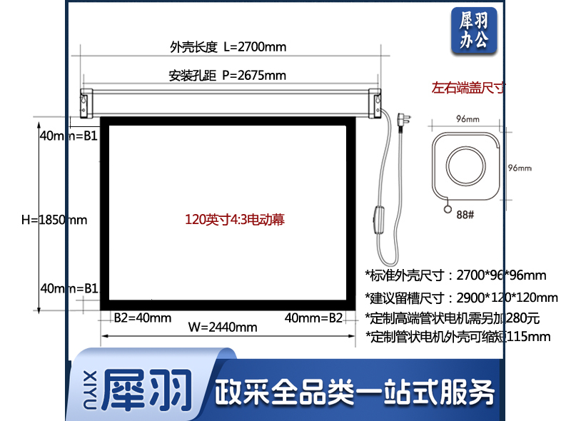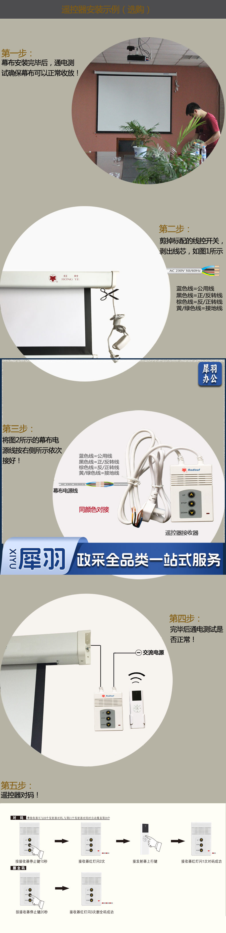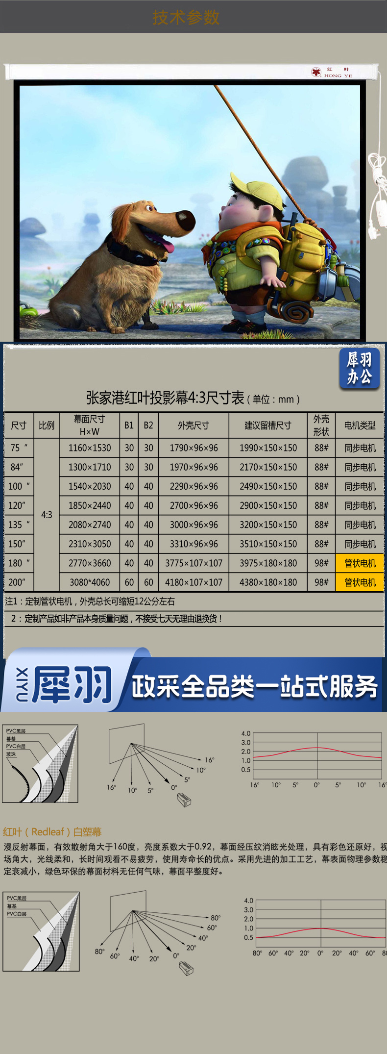 红叶(HONGYE)电动投影幕布120寸4:3白塑幕玻珠幕白玻纤高清幕布 2.44*1.85