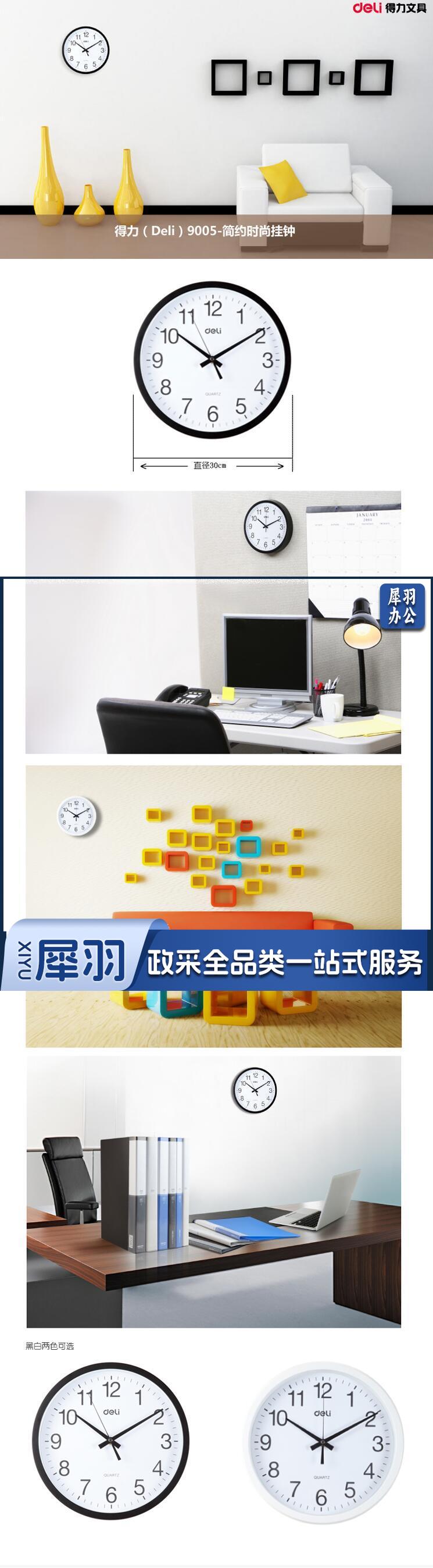 得力 9005 挂钟钟表 30cm挂钟 客厅挂式无噪音钟表 白色