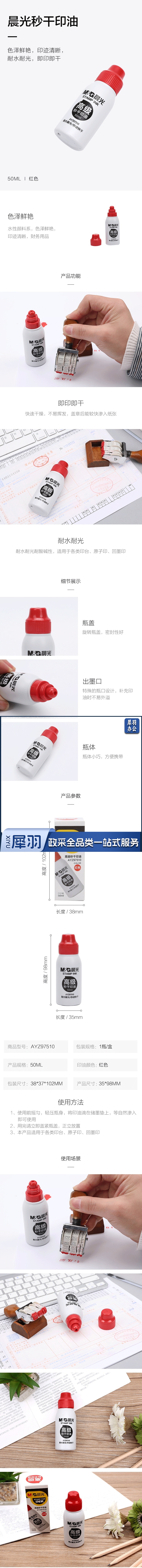 晨光AYZ97510 50ml高级秒干红色印油 财务专用耐光耐水印泥油 单瓶装