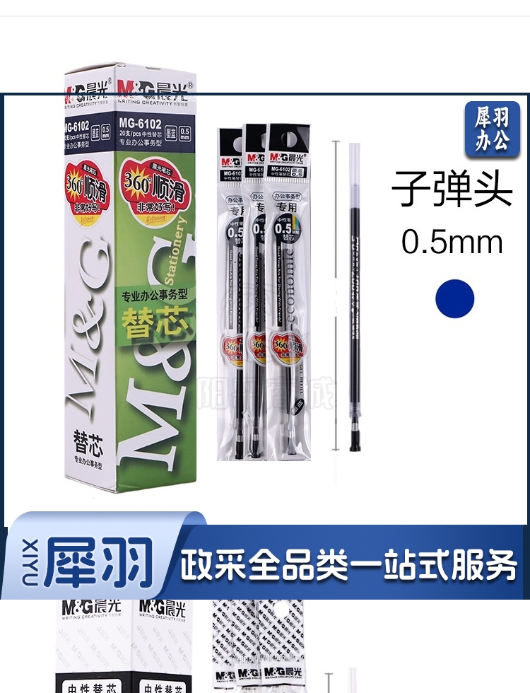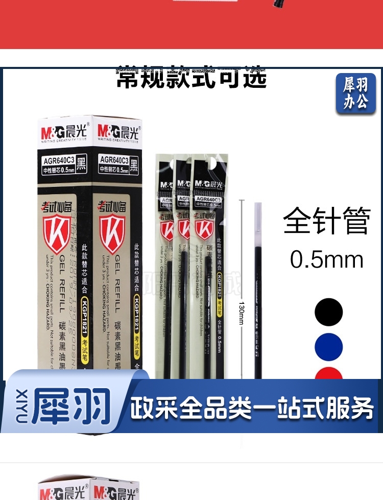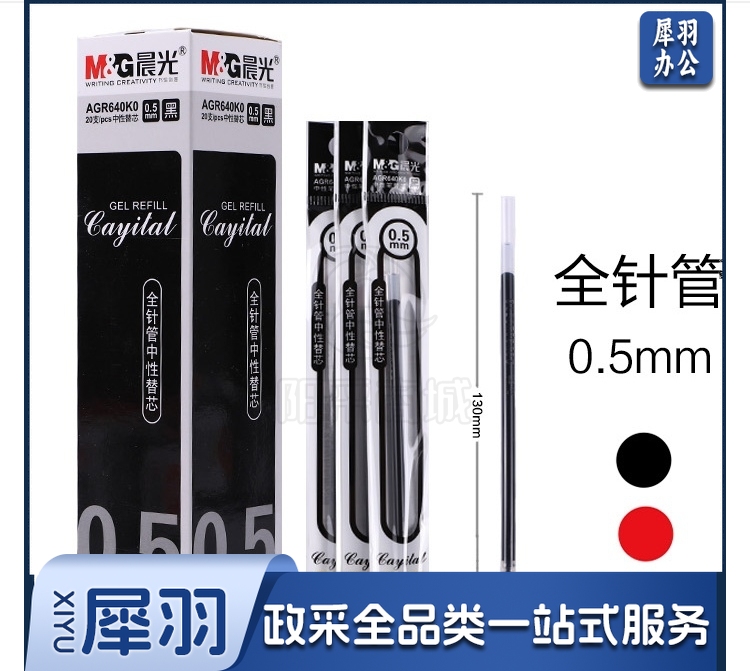 晨光(MG) AGR64070考试万岁0.5mm全针管中性笔替芯签字笔水笔芯 黑色