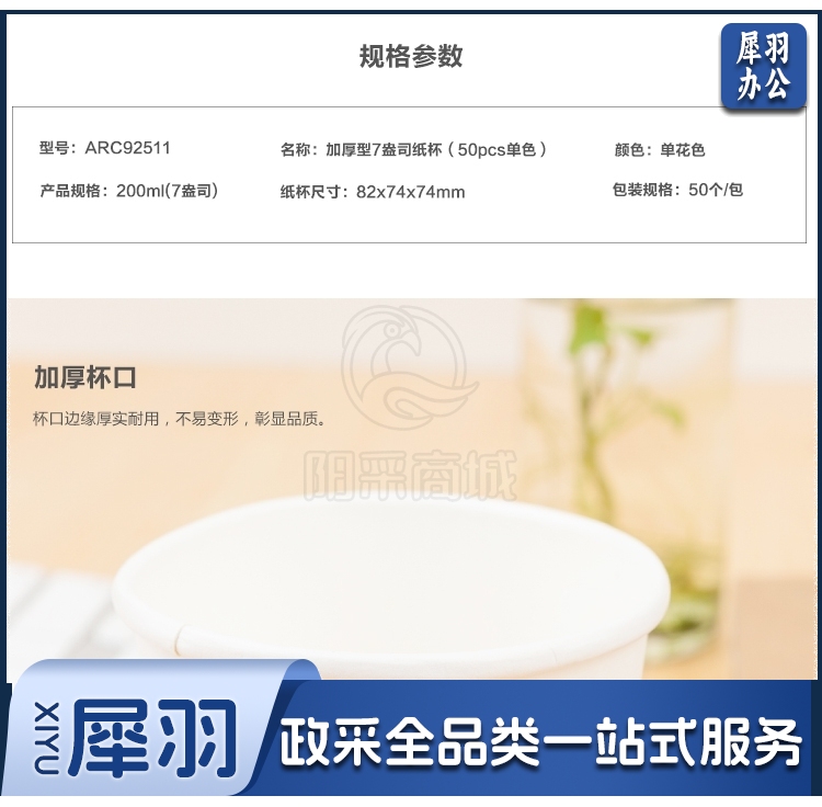 晨光(M&G)ARC92511纸杯加厚型7盎司一次性纸杯 40包/箱 喝水纸杯办公室(50pcs单色)50个/单包装