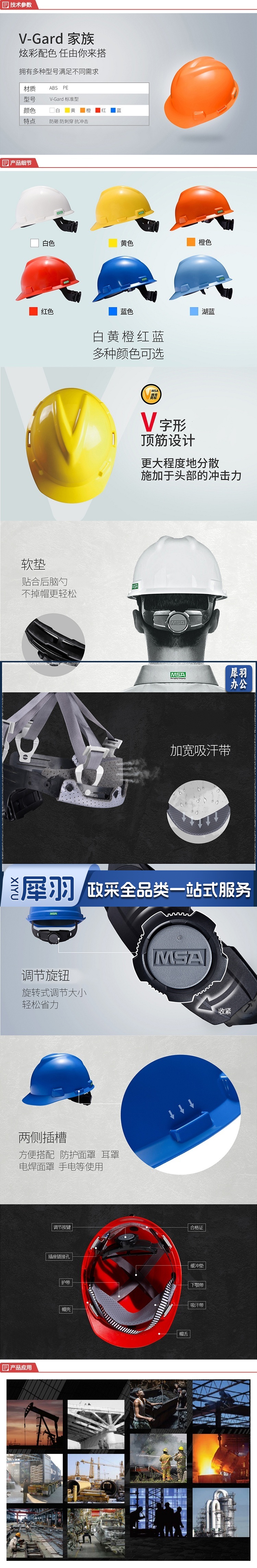 梅思安10172892- 红色帽衬分离款V-Gard ABS标准型安全帽工地防护防砸防坠落