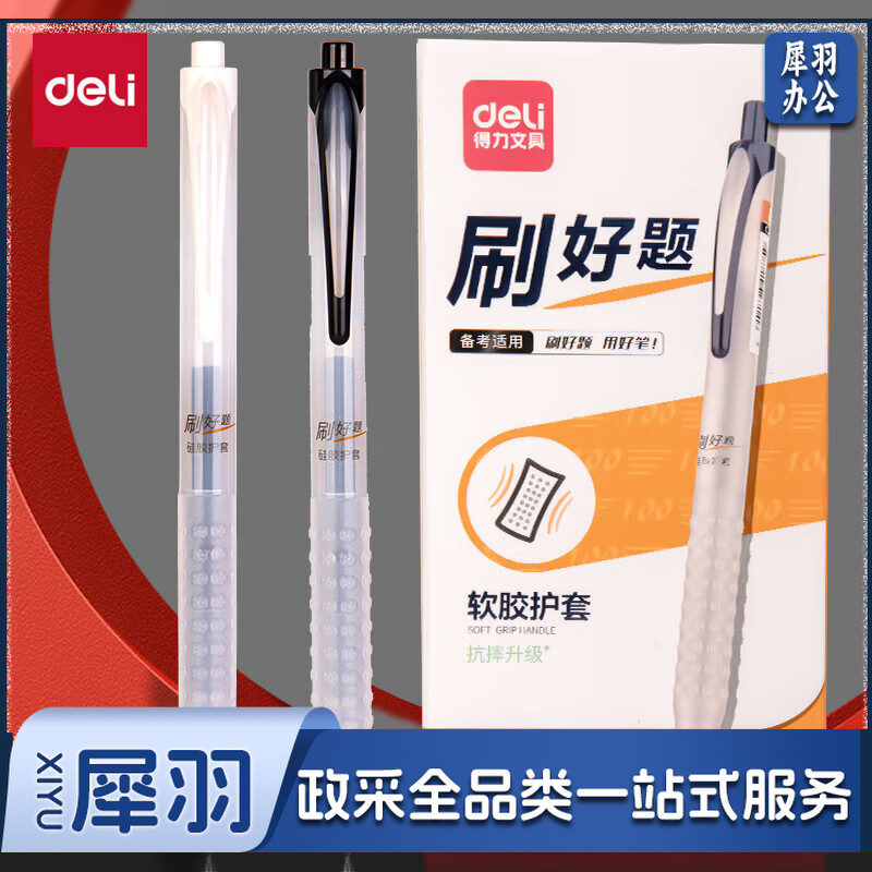 得力(deli)刷题中性笔0.5mm子弹头红笔黑色 12支/盒SA188