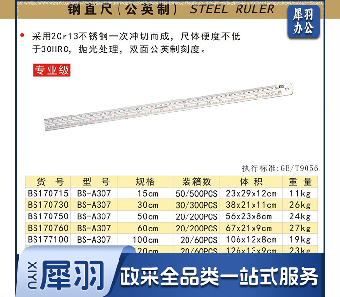 cc波斯BS170730不锈钢直尺(公英制)12”/300mm(把)