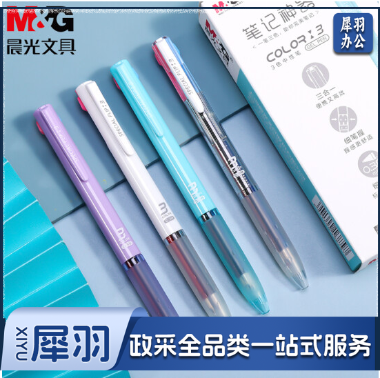 晨光T3402 0.38mm三色中性笔做笔记用抄写笔记神器水笔 多色笔合一多功能笔一笔多色红蓝黑笔三色按动中性笔